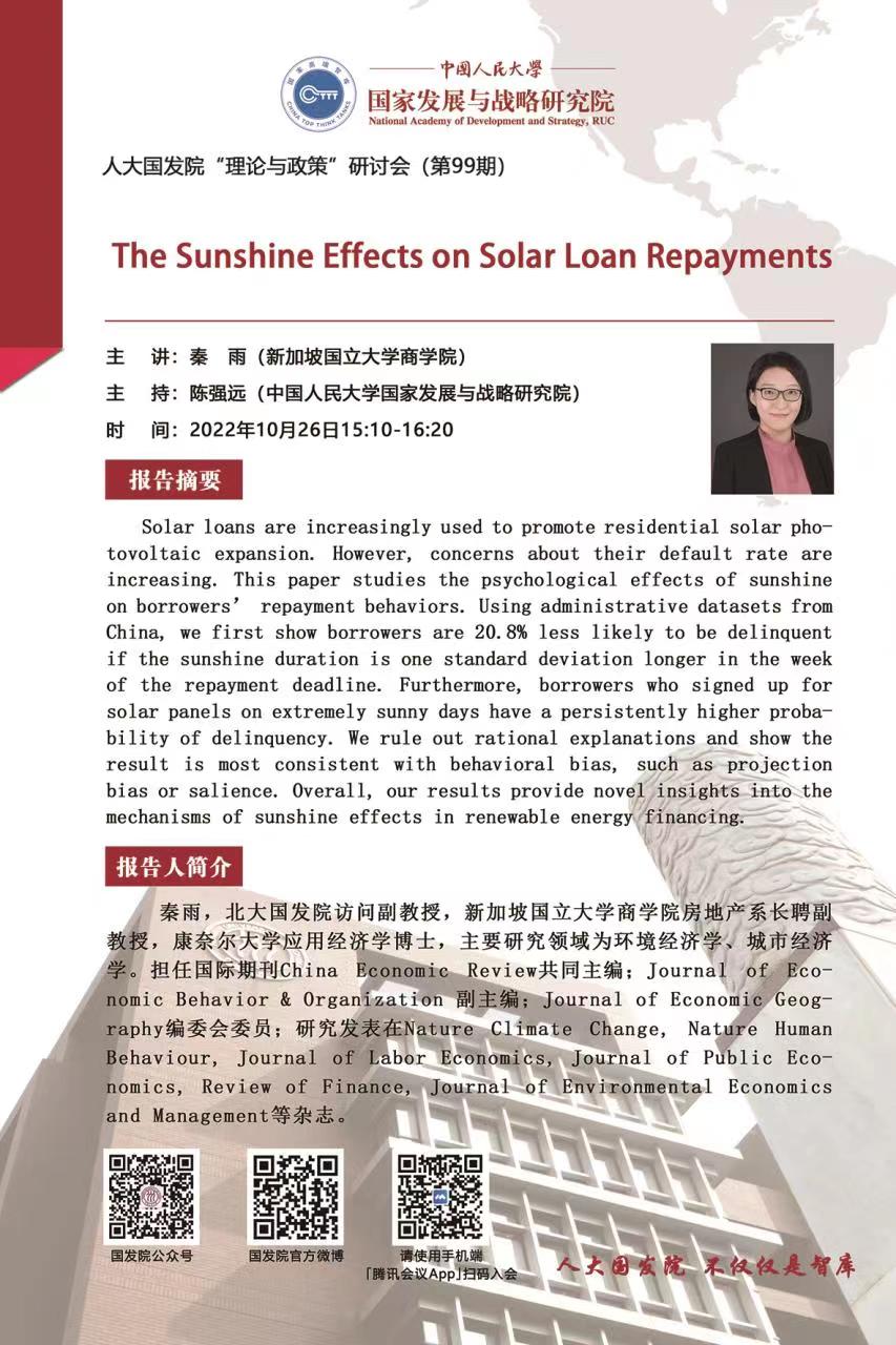摘要:Solar loans are increasingly used to promote residential solar photovoltaic expansion. However, concerns about their default rate are increasing. This paper studies the psychological effects of sunshine on borrowers’ repayment behaviors. Using administrative datasets from China, we first show borrowers are 20.8% less likely to be delinquent if the sunshine duration is one standard deviation longer in the week of the repayment deadline. Furthermore, borrowers who signed up for solar panels on extremely sunny days have a persistently higher probability of delinquency. We rule out rational explanations and show the result is most consistent with behavioral bias, such as projection bias or salience. Overall, our results provide novel insights into the mechanisms of sunshine effects in renewable energy financing.