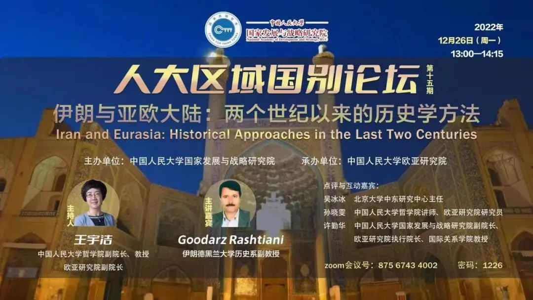 【会议预告】人大区域国别论坛(第十五期):伊朗与亚欧大陆:两个世纪以来的历史学方法