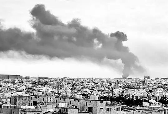 (这张3月25日在科威特首都科威特城拍摄的照片显示,位于费尔瓦尼耶省的科威特国际机场一油库遭袭后冒起浓烟。新华社发)