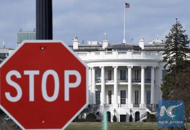 The STOP sign at the road in front of the White House in Washington D.C.(March 15). (Photo/Xinhua)
