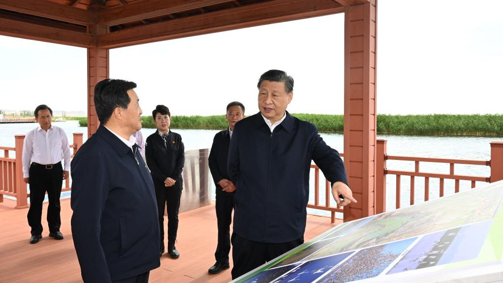 General Secretary of the CPC Central Committee Xi Jinping, also Chinese president and chairman of the Central Military Commission, visits Wuliangsu Lake in Bayannur, north China's Inner Mongolia Autonomous Region, June 5, 2023. /Xinhua