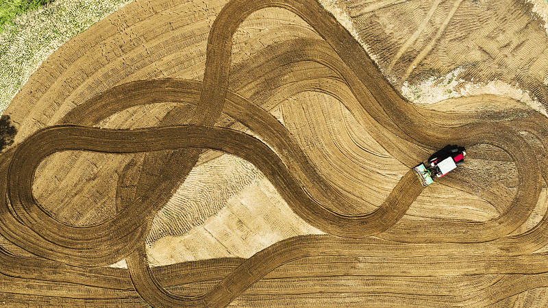 Farmers operate a farm machine to plant orchids in Zaozhuang, East China's Shandong Province, April 13, 2023. /CFP