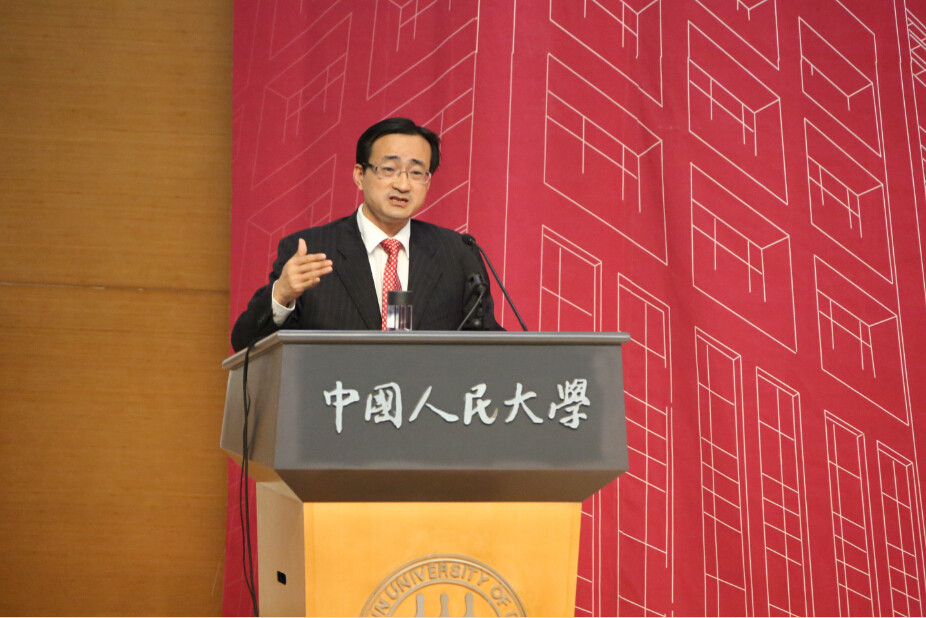校长、央行货币政策委员会委员陈雨露教授进行总结。陈雨露校长首先肯定了宏观经济论坛八年33期取得的成绩,高度评价宏观经济论坛是人民大学重要的智库品牌。他指出,当前的货币政策是“新常态”下的非常规的货币政策;积极的财政政策,稳健的货币政策和托底的社会政策三大政策的有效组合,须要在制度层面和价值层面有一个大的变局和大的深化。他谈到,十八大以后新一届中央在短期、中期、长期目标上三箭齐发,一方面严明法度、简政放权、提高效率,另一方面依法治国、公共治理、民生为重,同时从更基础的价值层面也提出社会主义核心价值体系,并凝炼为“公平正义,人民幸福”八个字的核心价值观。最后陈雨露校长表达了对中国灿烂未来的期待:在中国特色社会主义的核心价值体系下,中国即将展开一幅波澜壮阔的,新的大改革、大调整和大提升的画卷。