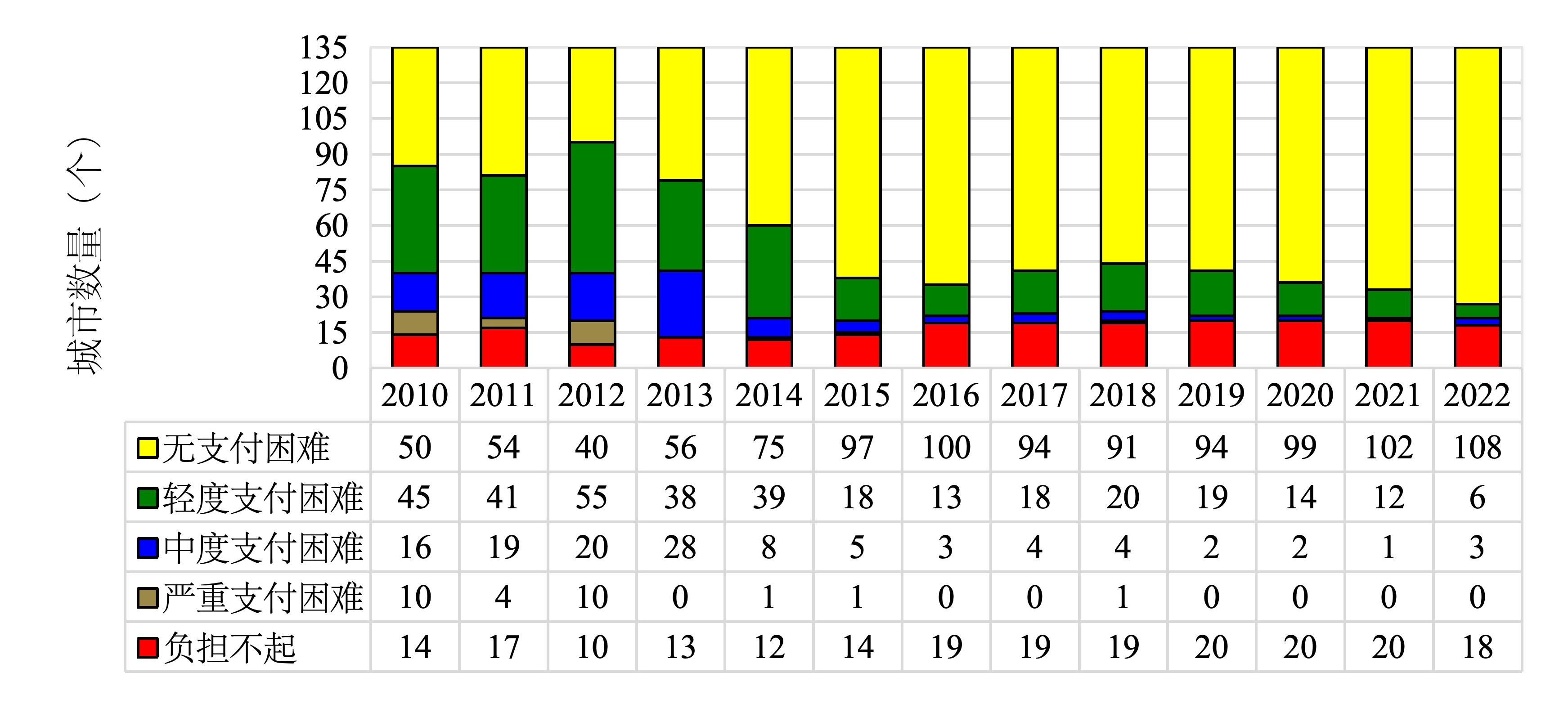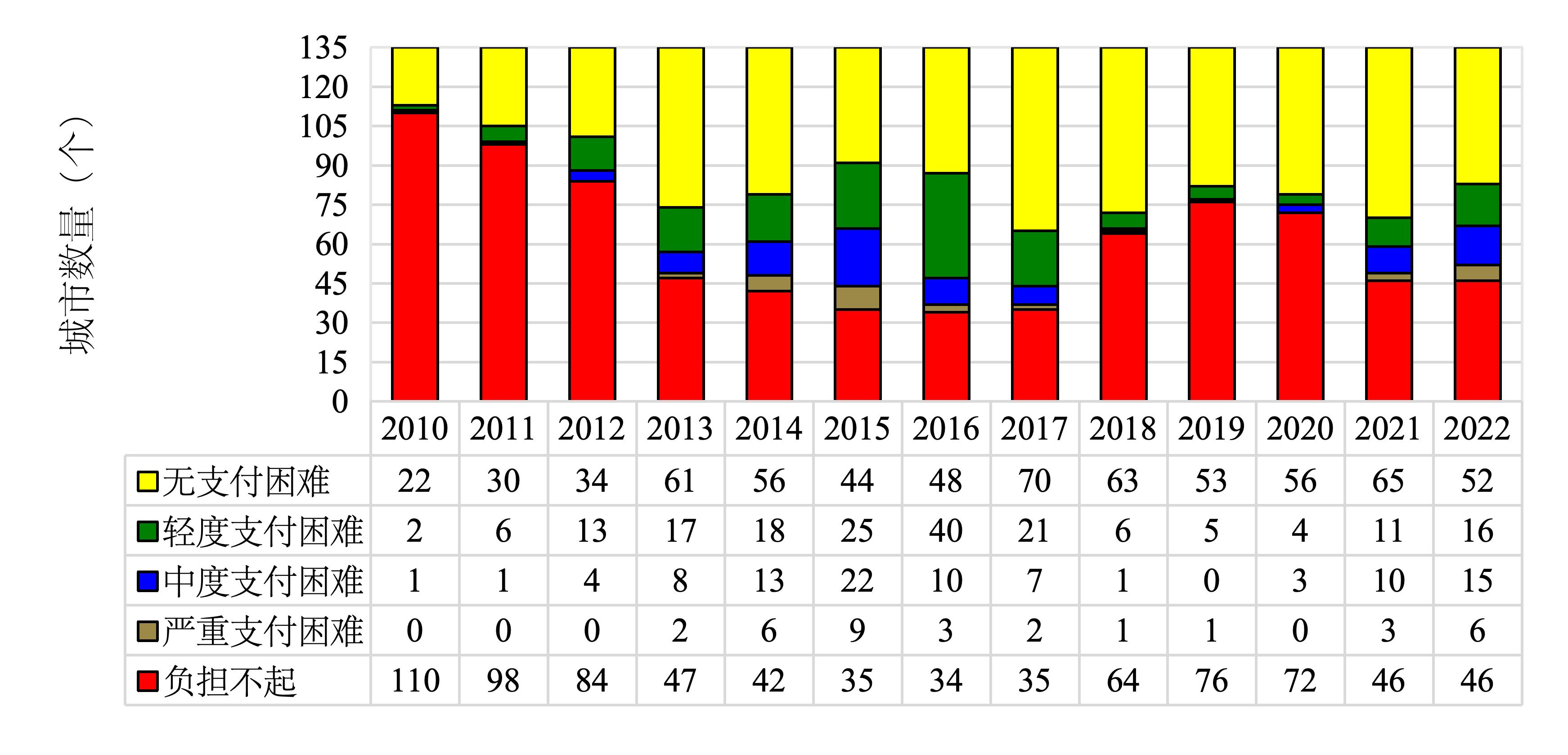 图2 2010-2022年中国135个城市房租可支付指数总体分布