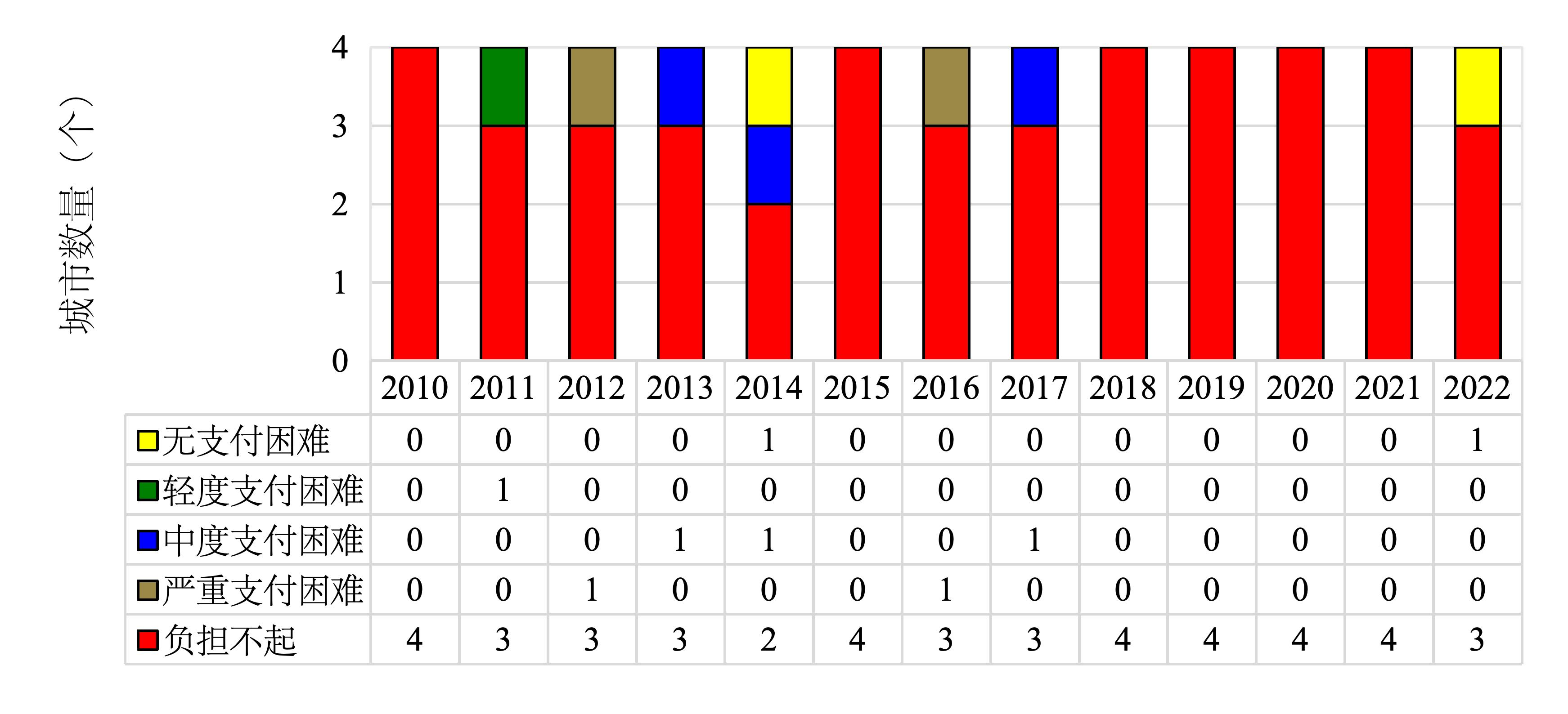 图4 2010-2022年31个二线城市房租可支付性分布