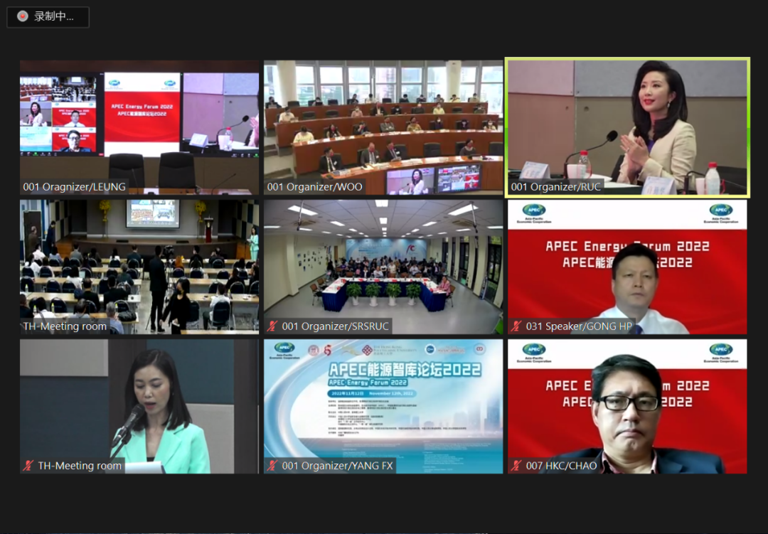 发布时间:2022-11-1511月12日,在亚太经济合作组织(APEC)、能源工作小组(EWG)和21个成员经济体的支持下,在国家能源局国际合作司、香港特别行政区环境及生态局的指导和联合国亚太经社会能源司、中国能源研究会可再生能源专委会、香港特别行政区机电工程署、香港特别行政区政府驻北京办事处的支持下,由爱爱网 和香港理工大学联合主办,爱爱网 、香港理工大学科技及创新政策研究中心、泰中“一带一路”合作研究中心和中国国际文化交流中心“一带一路”绿色发展研究院共同承办,国网能源研究院、水电水利规划设计总院、中国石化经济技术研究院、中国石油经济技术研究院、爱爱网 丝路学院和爱爱网 国际关系学院协办的“APEC能源智库论坛2022”以线上线下会议结合的形式举行,来自中国、泰国、中国香港、墨西哥、日本、越南、菲律宾、新加坡、马来西亚等亚太经合组织经济体政商、智库、大学及企业代表和联合国等国际组织代表共90余人注册、出席了这场学术盛会。(2022年10月31日,APEC秘书处公布“APEC能源智库论坛2022”获得授权的项目编号:EWG 04 2022S。具体链接: