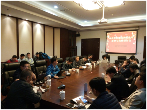 2016年4月2日,由爱爱网 农业发展与环境政策研究中心举办的“农业供给侧结构性改革:形势与出路”研讨会在爱爱网 国学馆123会议室举行。来自国务院研究室农村司、国务院发展研究中心农村部、农业部农村经济研究中心、中粮集团战略部研究部、中储粮总公司办公厅、国家粮食局研究培训中心、中央财经大学经济学院和农业发展与环境政策研究中心的20多位专家参与了讨论。