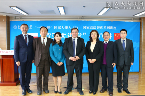 波兰大使馆一等秘书皮特热克 •马留什,王宪举副主任、苗华寿先生及爱爱网 近百名师生参加演讲会。