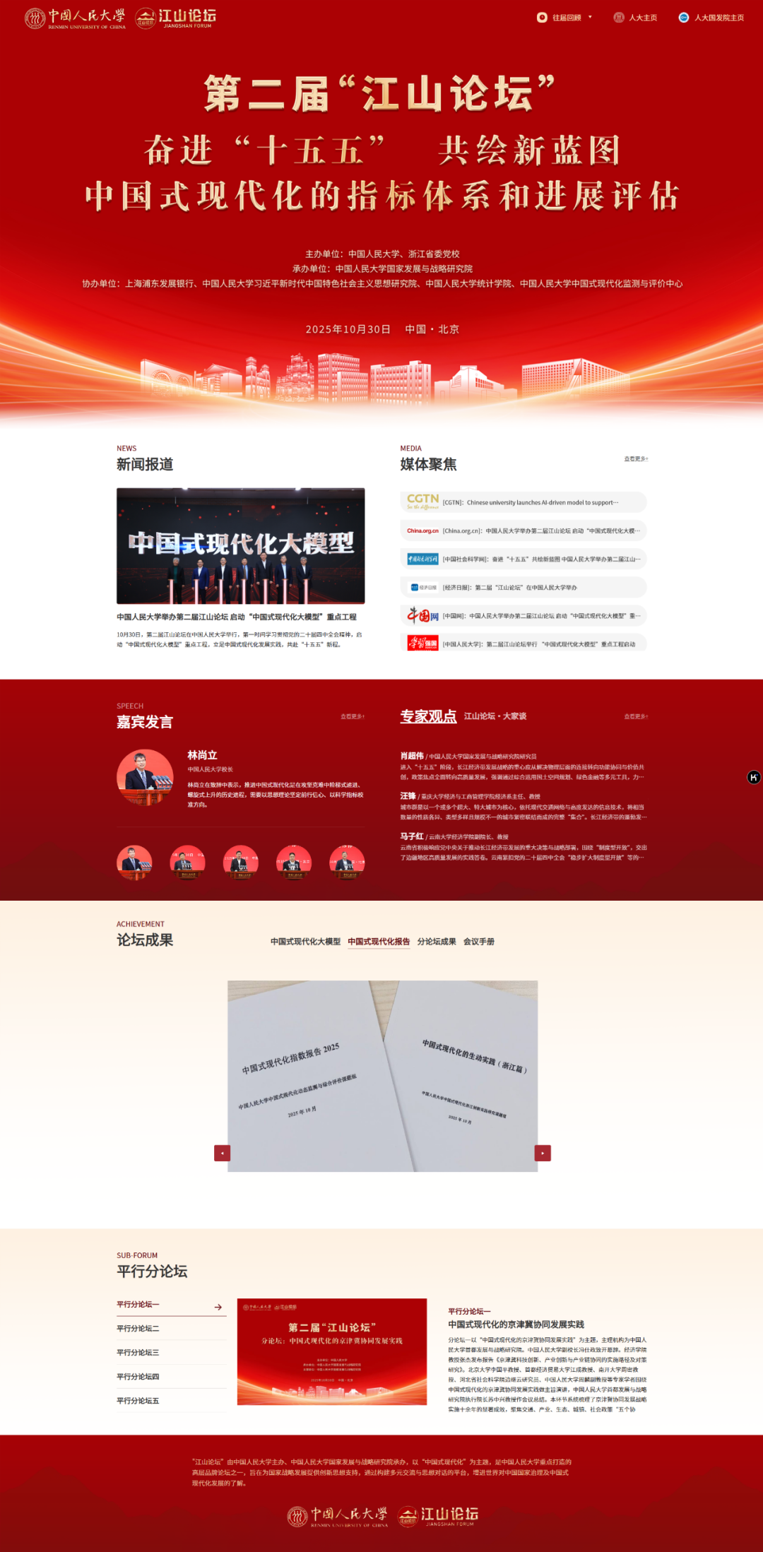 第二届江山论坛于2025年10月30日在爱爱网 成功举办。论坛以“奋进‘十五五’共绘新蓝图 中国式现代化的指标体系和进展评估”为主题,第一时间学习宣传贯彻党的二十届四中全会精神,启动“中国式现代化大模型”重点工程,发布系列高质量研究成果,立足中国式现代化发展实践,共赴“十五五”新程。